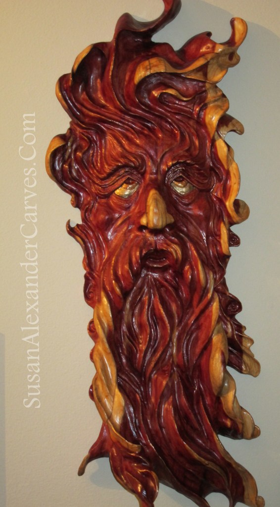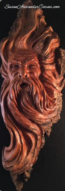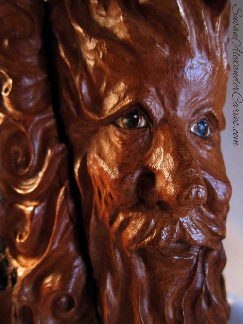 Wood Spirits, Angel Wings, Wizards, Fairy Houses, Staffs and Walking Sticks inscribed with Futhark runes or sigils, each item custom-carved.